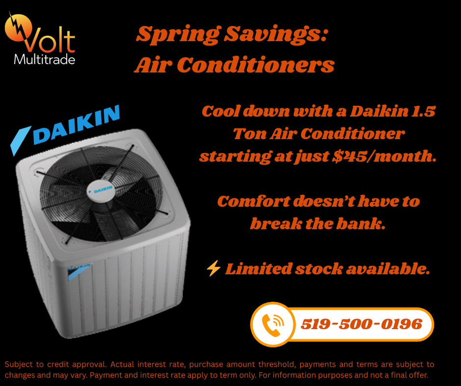 Get ahead of the summer heat with a Daikin 1.5 Ton Air Conditioner, starting at just $45/month.